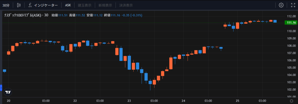 10/24(金)、米国政府閉鎖中において数少ない指標である米国CPI(消費者物価指数)が下振れだったため、ナスダックは史上最高値を更新しました。