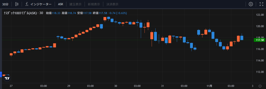 週初めから窓開けが連発して三空になったため、かなり恐る恐るなトレードでした。