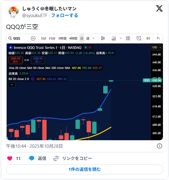 今週のトライオートETFの実現損益 ナスダック100トリプル(TQQQ)での、裁量トレード(ロング・ショート)の結果。 2025年10月20日の週の実現損益は33,291円。 10/20(月…