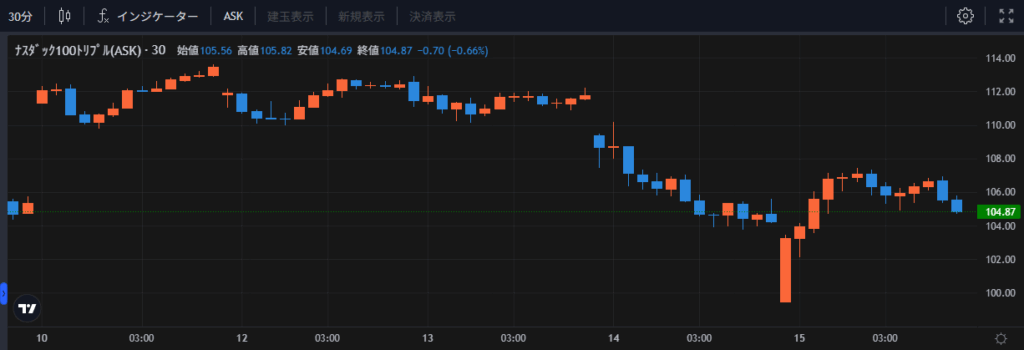 ナスダック100トリプル(TQQQ)での、裁量トレード(ロング・ショート)の結果。