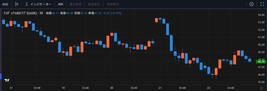 今週から、トライオートETFのナスダック100トリプル(TQQQ)は1/2の分割が実施されました。